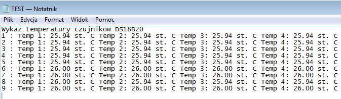 Potrzebne były niewielkie zmiany w porównaniu z programem przedstawionym w projekcie I. Głównie należało odpowiednio dobrać wyświetlanie danych i ich zapis do pliku. Spowodowane jest to tym, że czujniki DS18B20 mogą być w dużej ilości podłączone pod jeden pin arduino. Czujniki wyszukiwane są po ich adresie.