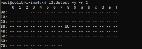 Panel dotykowy jest podłączony do interfejsu I2C-2. Adres podłączonego układu można sprawdzić odpowiednią komendą: